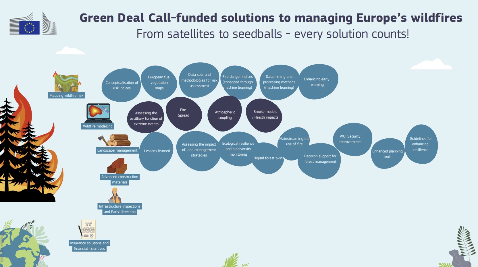 This policy brief summarises the key insights derived from the results of two workshop cycles across five working groups (environment, societal, infrastructure, insurance, and civil protection) organised by the Firelogue project over the course of 2023 and 2024. More detailed recommendations for all stakeholder groups, including policymakers, academia, practitioners and civil society, are contained in D5.3 Contextualised multi-stakeholder recommendations II, available on the Firelogue website (D5_3_Contextualised_multi-stakeholder_recommendations.pdf).